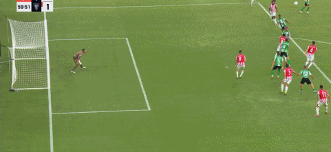 第90+7分钟,巴坎布抢点头球破门扳回一城,贝蒂斯1-2